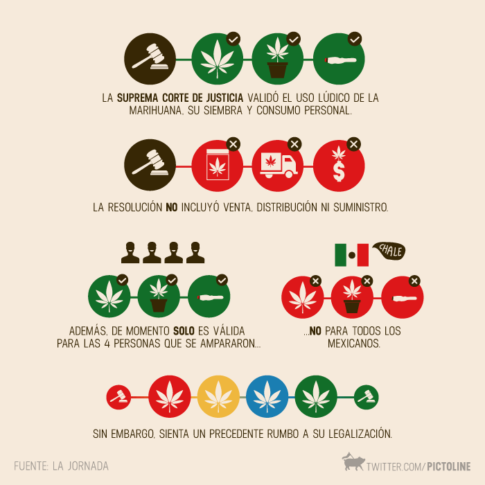 En una polémica resolución, la Suprema Corte de Justicia de la Nación avaló el uso recreativo de la marihuana para un grupo de 4 ciudadanos quienes interpusieron un amparo para su autoconsumo, sentando un precedente muy relevante rumbo a su despenalización.
